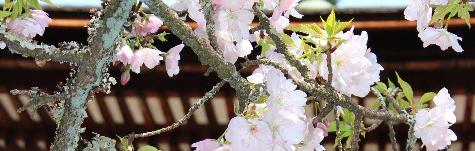 石山寺は「花の寺」としても知られています。境内では、2月頃から3箇所の梅園で梅が見られます。3月上旬にはカンザクラなど早咲きの桜が咲き始め、梅と桜が同時期に楽しめることも魅力のひとつです。桜は、早咲きのものからソメイヨシノ、シダレザクラ、遅咲きのサトザクラなど様々な種類があり、長い期間その花を咲かせます。