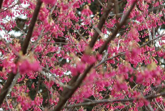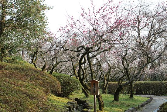 山内一帯に咲き誇る梅花と、さまざまな種類の桜花、