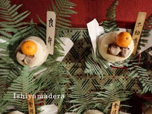 本日12月30日、境内の115箇所にお鏡餅をお供えしました。 本堂内陣の観音さまの前には、 毎年独特な形のお鏡飾りがお供えされます。 これはお釈迦様のお骨を納めた仏塔(ストゥーパ)の形を模したもので、 石山寺に古来から伝 … 続きを読む お鏡飾り