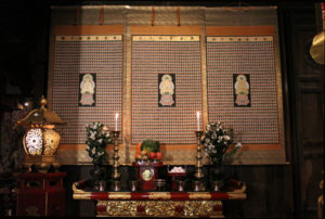 本堂内陣には早くも三千仏のお軸が掛けられています。